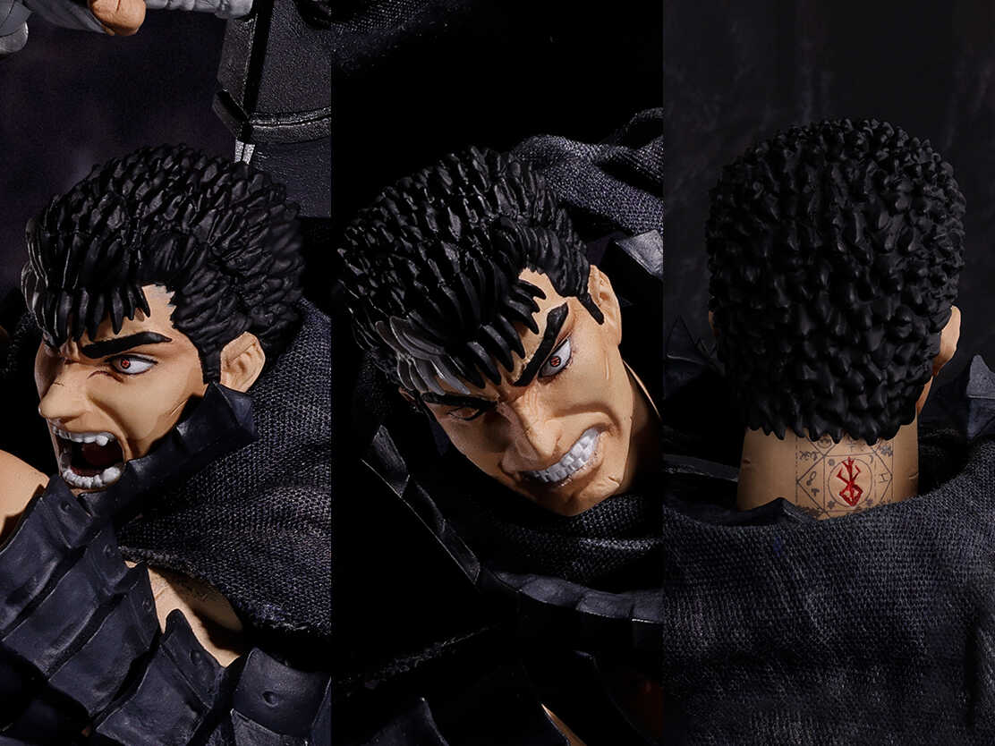 Come sempre, articolazioni, armi ed accessori rednono questa figura una chicca per ogni fan della saga creata da Miura. Tra gli accessori inclusi non potevano mancare iconici oggetti come il braccio-cannone o il Behelit!