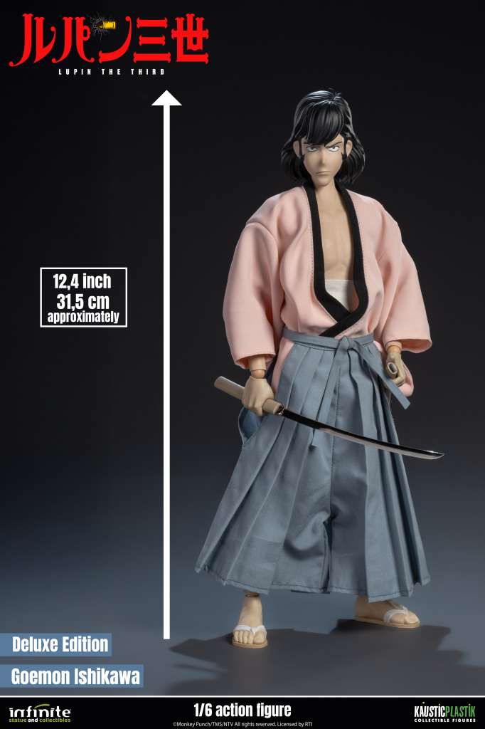 La linea Anime 1/6 di Infinite Statue e Kaustic Plastik, dedicata a Lupin the 3rd Part IV: L’Avventura Italiana, si espande con due nuovi protagonisti: Goemon Ishikawa XIII e Inspector Koichi Zenigata. Dopo il grande successo di Lupin e Jigen, questa collezione continua a conquistare fan e collezionisti grazie a sculture fedeli, articolazioni avanzate, vestiti in stoffa e accessori iconici. Goemon Ishikawa XIII action figure è disponibile in edizione Standard o Deluxe. Un must-have per ogni appassionato di Anime e figure di alta gamma.