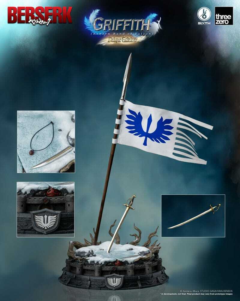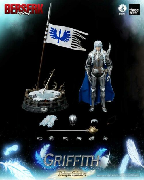 Dalla popolare serie manga “BERSERK”, il nuovo oggetto di threezero è Griffith (Reborn Band of Falcon)! La sua Deluxe Edition è offerta come articolo limitato e sarà in preordine in vari eventi in tutto il mondo.