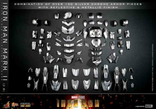 Sideshow e Hot Toys sono lieti di svelare la versione 2.0 della statuetta da collezione Iron Man Mark II in sesta scala per migliorare l’esposizione della Sala delle Armature! La caratteristica distintiva di questa figura in materiale pressofuso è senza dubbio la combinazione di oltre 100 pezzi di armatura cromata argento, che supera quella di qualsiasi altra figura Hot Toys, rendendola ancora più impressionante e visivamente sorprendente.
