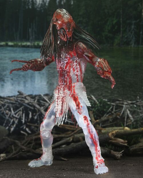 Ambientato nella Nazione Comanche 300 anni fa, l’emozionante film Predator Prey Neca è la storia di una giovane donna, Naru, una guerriera feroce e altamente qualificata che è cresciuta all’ombra di alcuni dei cacciatori più leggendari delle Grandi Pianure. Quando il pericolo minaccia il suo accampamento, decide di proteggere il suo popolo. La preda che insegue, e che alla fine affronta, si rivela essere un predatore alieno altamente evoluto con un arsenale tecnologicamente avanzato, risultando in una feroce e terrificante resa dei conti tra i due avversari. Questa action figure in scala da 7 pollici è dettagliata per rappresentare l’aspetto del Predatore Selvaggio dopo aver vinto la sua battaglia contro un orso. Inzuppato di sangue dopo la brutale rissa, questo Predator ammantato include maschera, zaino magnetico, parti di lancia collassate ed estese, lame del guanto, mandibole intercambiabili e mani. Dispone di una speciale confezione traslucida e di una fodera.