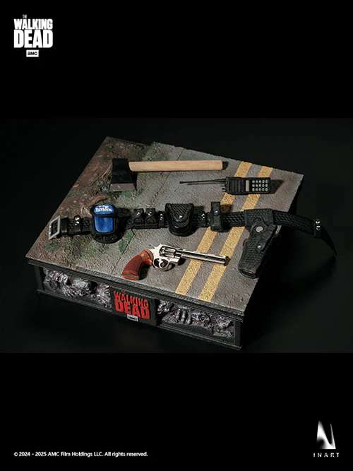 Questa action figure INART in scala 1/6 di Rick Grimes è ufficialmente autorizzata da AMC. L’outfit distintivo di Rick presenta bottoni della camicia realizzati su misura con doppia incisione metallica per ricreare l’unico e fedele dettaglio visto sullo schermo. I celebri stivali di Rick, consumati e caratterizzati da texture stratificate, riproducono con realismo l’estetica ruvida della sopravvivenza. La figure include inoltre la base standard della serie, con un design appositamente dedicato al personaggio, completando così un pezzo immancabile in ogni collezione dedicata a The Walking Dead e al suo eroe più rappresentativo