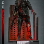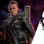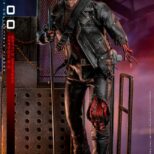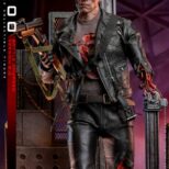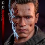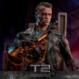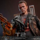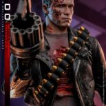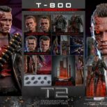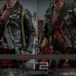 La versione fedelmente realizzata e danneggiata in battaglia del T-800 Sixth Scale Figure presenta una scultura della testa di nuova concezione con bulbo oculare rotante separato, oltre a un’ulteriore scultura della testa gravemente danneggiata che rivela l’endoscheletro con un occhio destro illuminato a LED; un costume meticolosamente sartoriale con giacche realizzate in vera pelle (una versione danneggiata dalla battaglia e una aggiuntiva che è sbrindellata sulla manica sinistra), un paio di pantaloni anch’essi in vera pelle e una maglietta stampata grigia; armi tra cui una mitragliatrice, un fucile, una pistola, un lanciagranate, una serie di proiettili e un’asta; e infine una base per figure diorama a tema acciaieria appositamente progettata che viene fornita con funzione LED per replicare l’iconica scena finale della battaglia tra T-800 e T-1000.