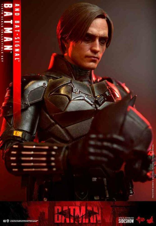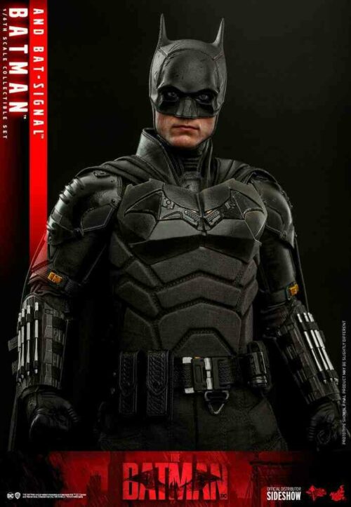 Meticolosamente realizzata sulla base dell’apparizione di Robert Pattinson come Batman / Bruce Wayne nel film, la figura in sesta scala di Batman con una nuova scultura della testa di Bruce Wayne e una scultura di capelli con un’incredibile somiglianza; sculture di testa di Batman di nuova realizzazione con caratteristiche separate di bulbi oculari rotolanti, anche design intercambiabile delle tecniche delle facce inferiori; un corpo specializzato che evidenzia la forma muscolare di Batman; Batsuit splendidamente sartoriale con mantello e batarang staccabile sul petto Gadget per pipistrelli tra cui pistola per bombe appiccicose, batarang e rampini, una serie di accessori altamente dettagliati tra cui tuta alare per scene di planata, busta dell’Enigmista, manette, un supporto per figure appositamente progettato con accessori diorama con scala illuminata a LED e decorazioni per l’edificio, anche uno sfondo a tema.