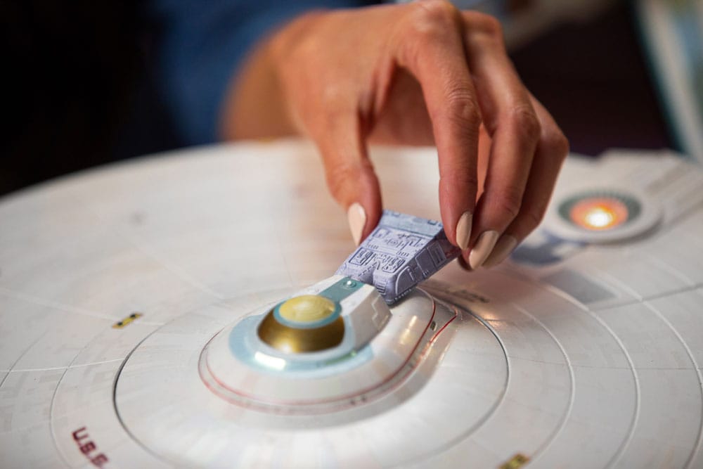 – Tre diverse modalità di illuminazione (avvio, curvatura e modalità impulso/crociera) illuminano una serie di funzioni tra cui il deflettore di navigazione, Impulse Drive, gondole, banchi di phaser e lanciatori di siluri fotonici